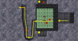 Follow the passage through a small room (animal) and up a curving passageway. When you get to the 4-way intersection, go south. Follow this corridor until you get to the door (south). Two critters may come out of the rooms to the east and west. |