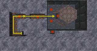 Go through it and south until you get to the T-intersection. Turn east (or cut through the room with the critters and treasure pile). Go up the short ramp and follow the passage until you get to a door on your left (south). |