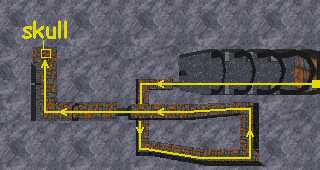 Getting back out again is another long walk. Go all of the way back to the room where you appeared after clicking the skull. If you go through the other door, you will get to another floating skull. Clicking on it will teleport you back near the entrance. |