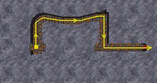 This new passage is very long. Turn right at the second T-intersection, then go left at the next T-intersection. The passage will end at an elevator. Pull the lever and ride it. |