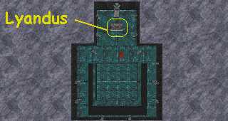 There will be a couple of critters at the bottom, but usually they manage to fall into the pit under the elevator. Lysandus is in the big coffin at the north. Pretty fancy digs for someone who was buried on the sly. |