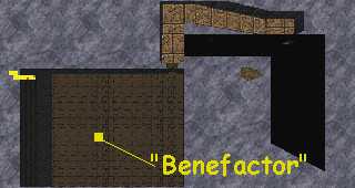 Above you on the north wall is an opening. Levitate up to it. There are no critters here. Just a guy that looks like an assassin. Click on him and he asks you to say his name. Type, "Benefactor" and he'll open the top of the big pyramid. Go back out to the opening and head for the big pyramid. |