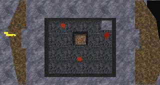 If you didn't take care of the Ancient Lich earlier, he's going to be waiting for you. Once you take care of him, ride the elevator down into the pyramid. There will be two critters waiting for you at the bottom. If you clicked carefully on the groaning headstones, the trapdoor in the NE corner of the room will be open. Step on the elevator and go down. |