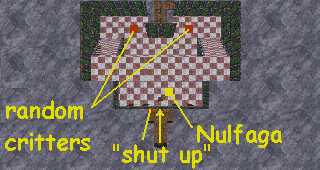 Getting to the Unicorn Horn is a pretty quick trip (unless you really feel like exploring Shedungent). Go into Nulfaga's chamber (remember to say "shut up" to the banner to get in). Nulfaga is still nuttier than a fruitcake, so ignore her and out the door on the other side.