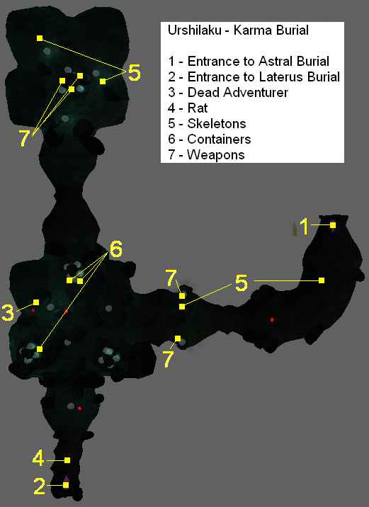 There are seven sections to the Urshilaku Burial Caverns, but you only need to go through four of them to get to your destination. This is not to say that the other three are not worth exploring, but that they are not critical to your success.